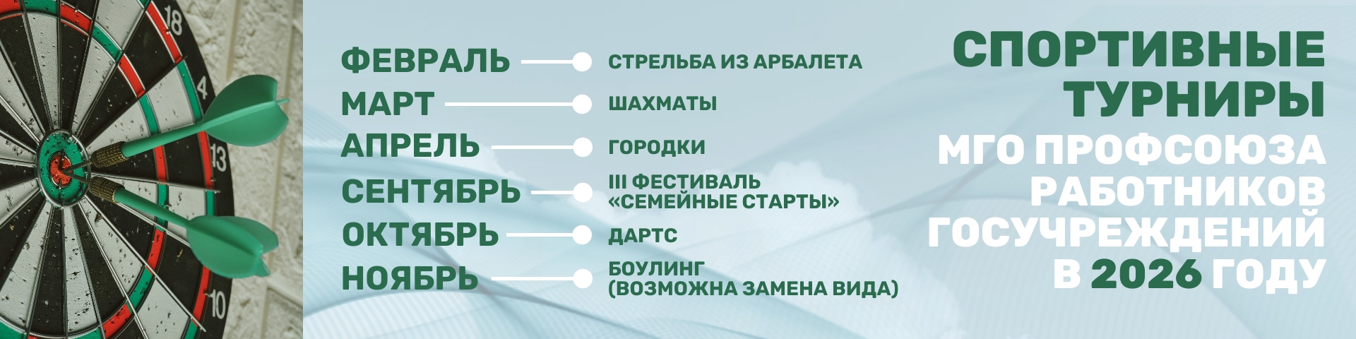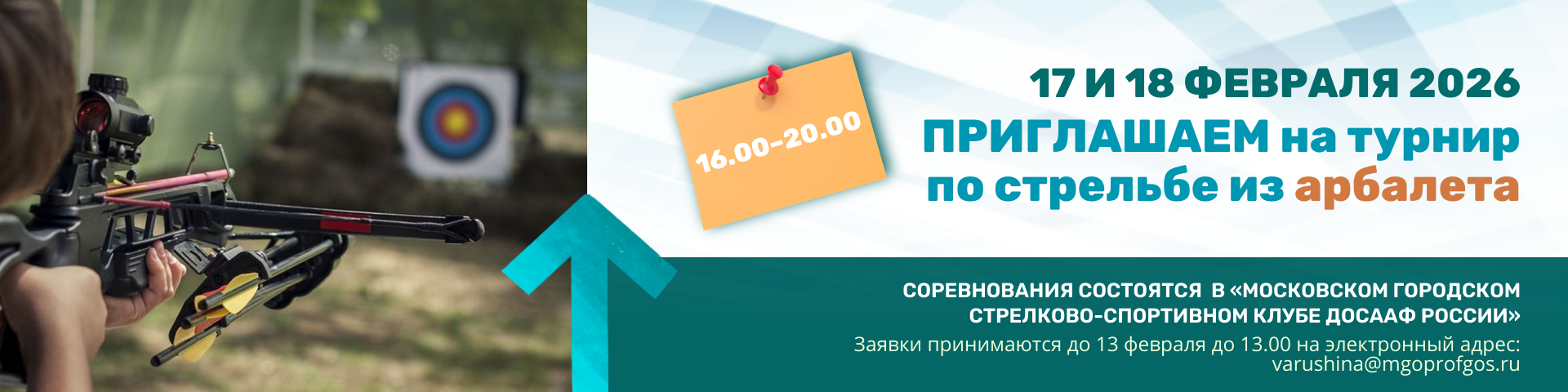 Отдел социальных программ аппарата комитета МГО Профсоюза работников госучреждений приглашает профсоюзные организации принять участие в турнире по стрельбе из арбалета (3 человека, независимо от пола).