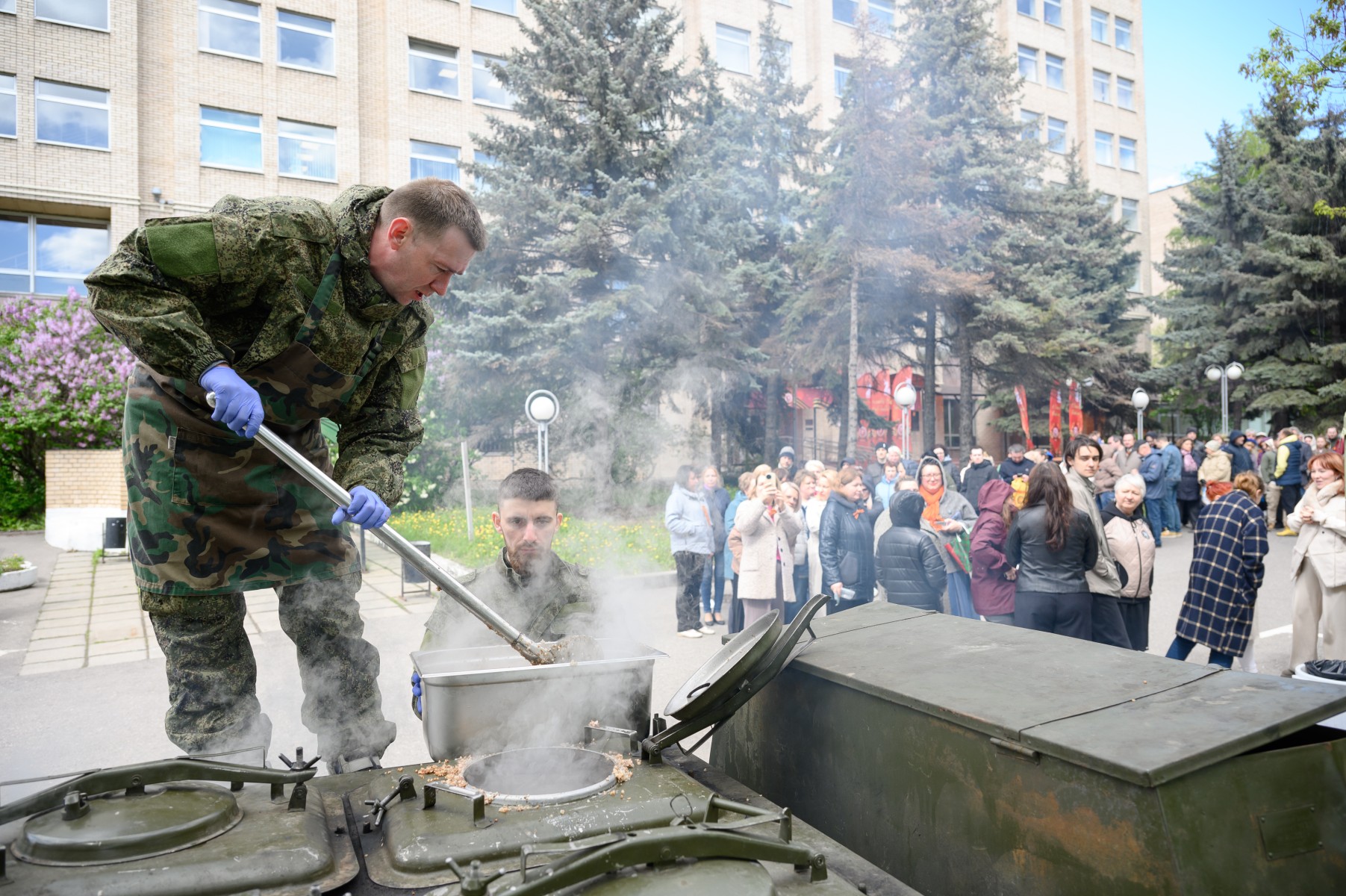 Члены профсоюзной организации ФИПС организовали и приняли участие в торжественных праздничных мероприятиях к 80-ти летию Победы . Для сотрудников была организована полевая кухня перед зданием ФИПС и в завершении праздничных мероприятий был проведён концерт, с выступлением созданного три года назад Хора ФИПС совместно с артистами Академического Хора радио Орфей.