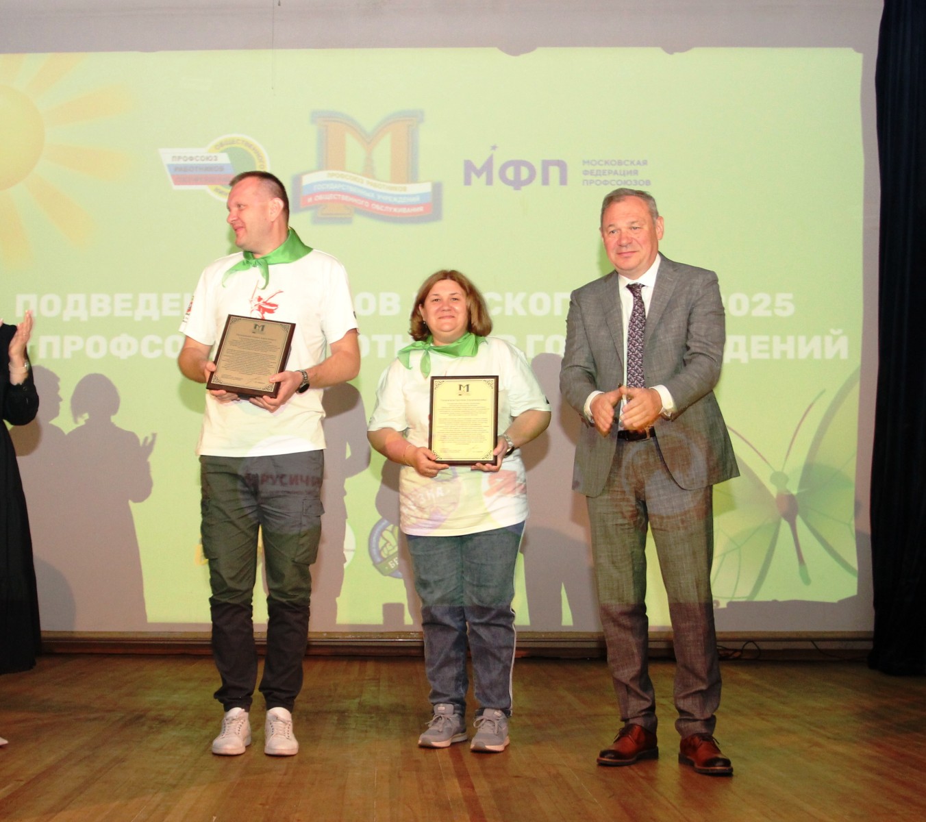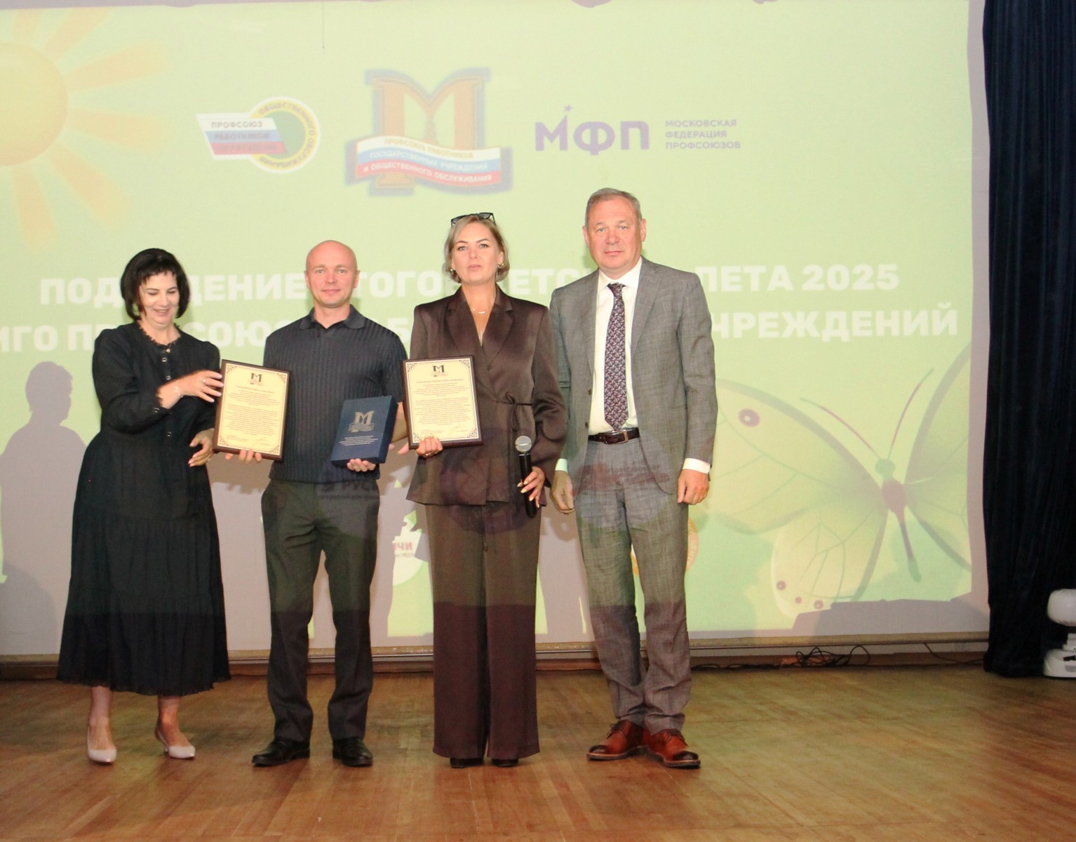 Затем состоялась торжественная церемония «Итоги и надежды». Здесь уже звучали слова о пройденном пути, о достижениях и, самое главное, о планах на будущее. Своими мыслями поделились заместитель Председателя Профсоюза Татьяна Владимировна Шестакова, руководитель технической инспекции труда МФП Анатолий Николаевич Захаренков, член Президиума МГО Профсоюза Лариса Михайловна Ромашова и помощник Председателя МГО Профсоюза Александр Иванович Рыльщиков.