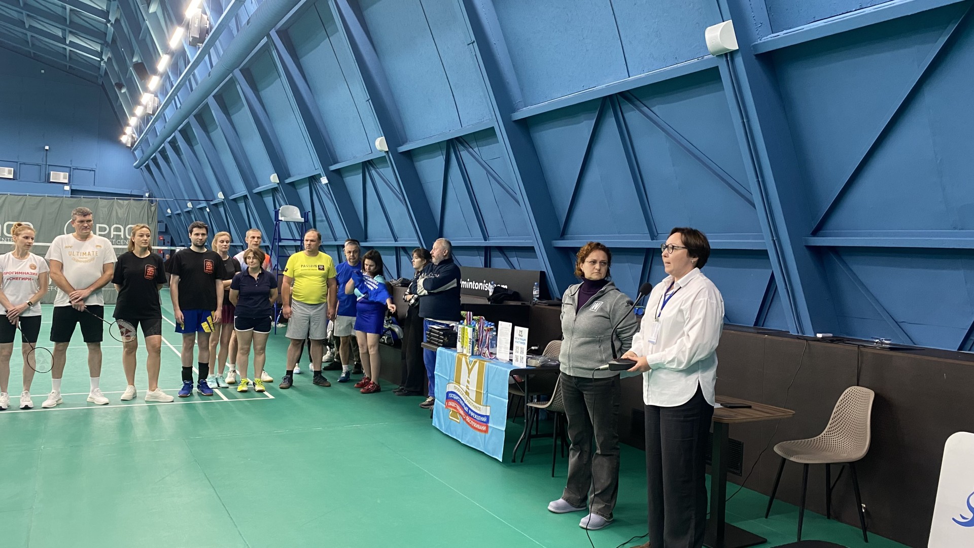 27 сентября в Спортивно-игровом клубе "Space Racket Center" прошли соревнования по бадминтону в рамках XVII Спартакиады МГО Профсоюза работников госучреждений. Турнир проходил по олимпийской системе, игры одновременно проводились на 4-х кортах.