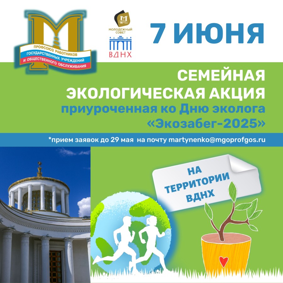 Молодежный совет МГО Профсоюза работников госучреждений приглашает принять участие в семейной экологической акции "Экозабег-2025"!