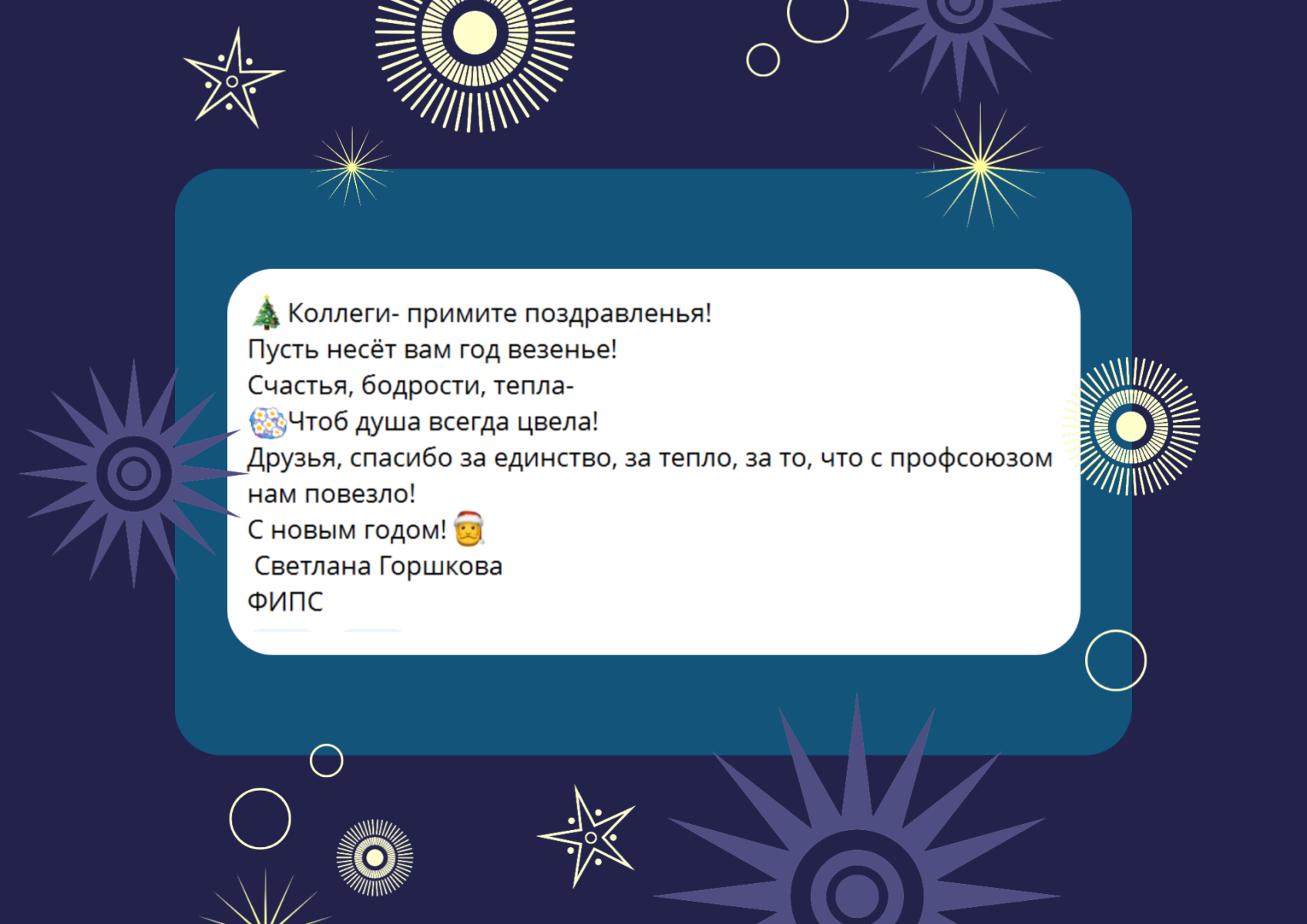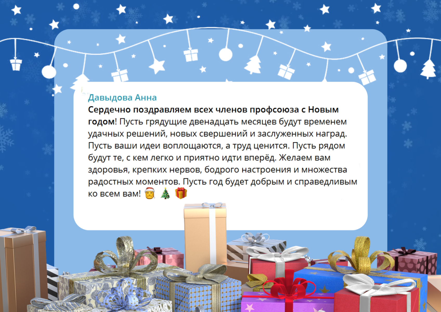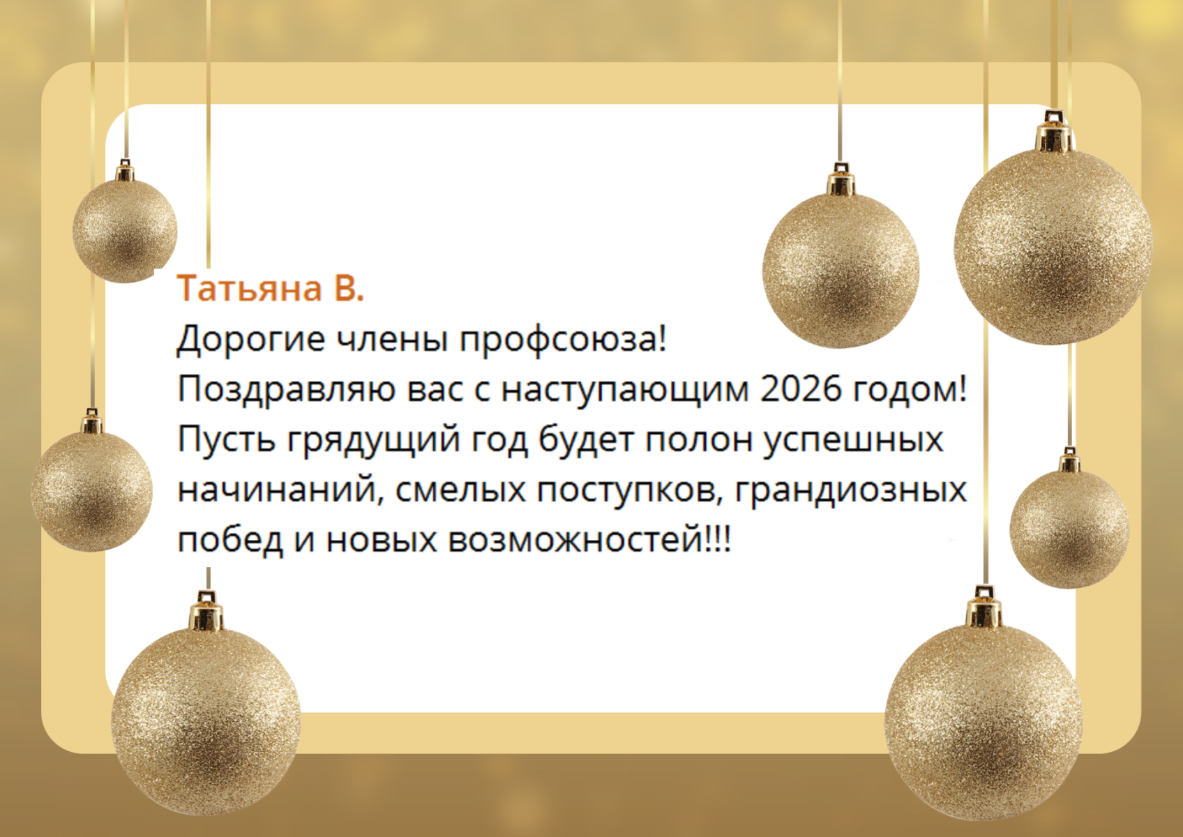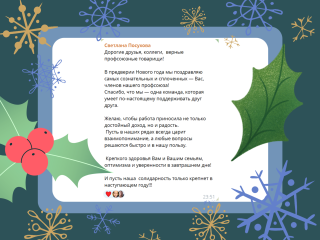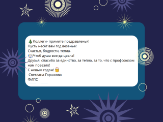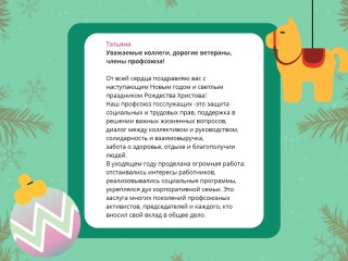 В процессе розыгрыша в адрес горкома и членов Профсоюза поступили многочисленные новогодние поздравления. Знакомьтесь с некоторыми из них.