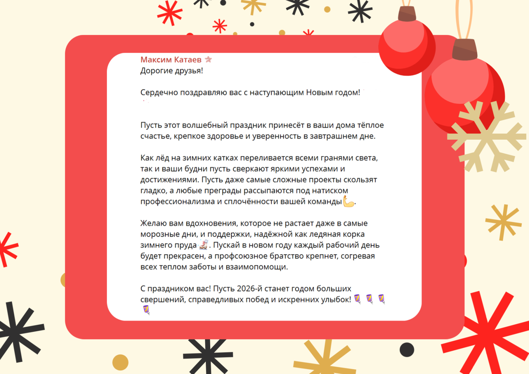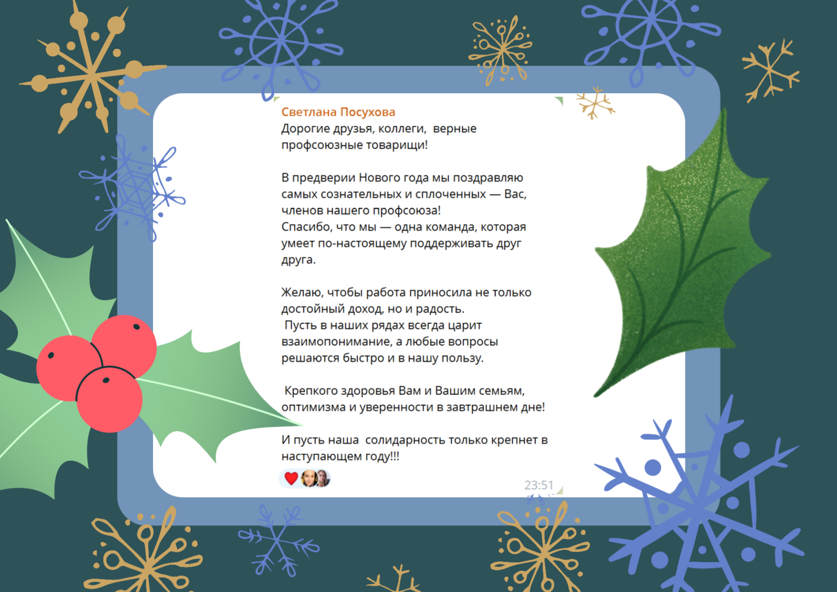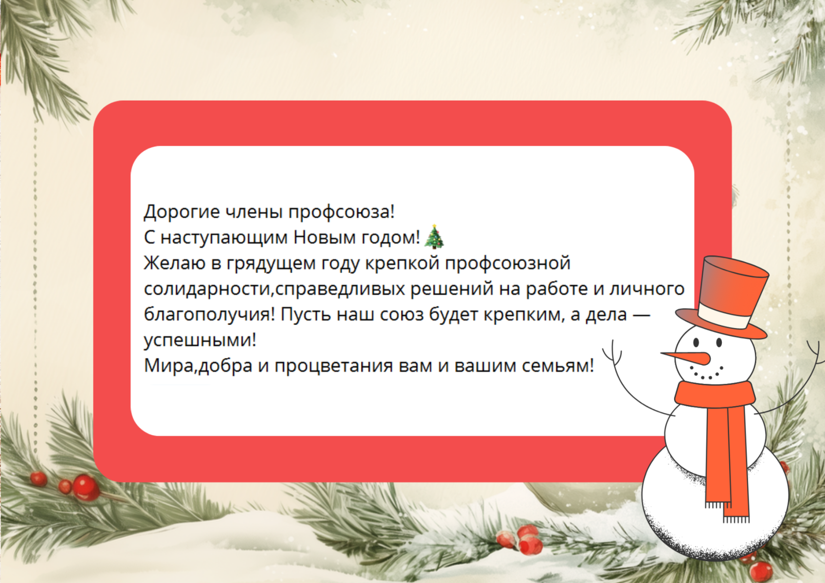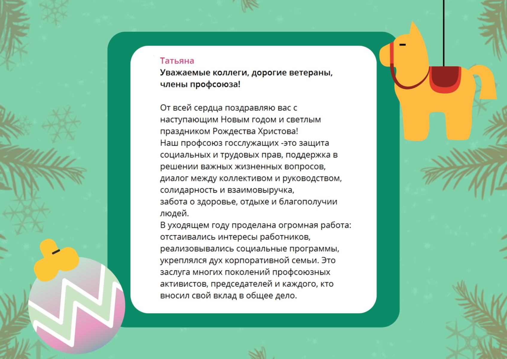 В процессе розыгрыша в адрес горкома и членов Профсоюза поступили многочисленные новогодние поздравления. Знакомьтесь с некоторыми из них.